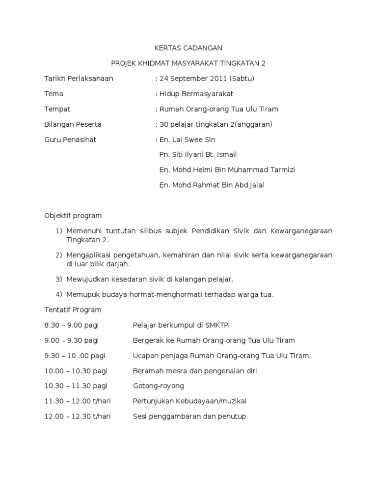Kertas Cadangan Program Khidmat Masyarakat Pdf